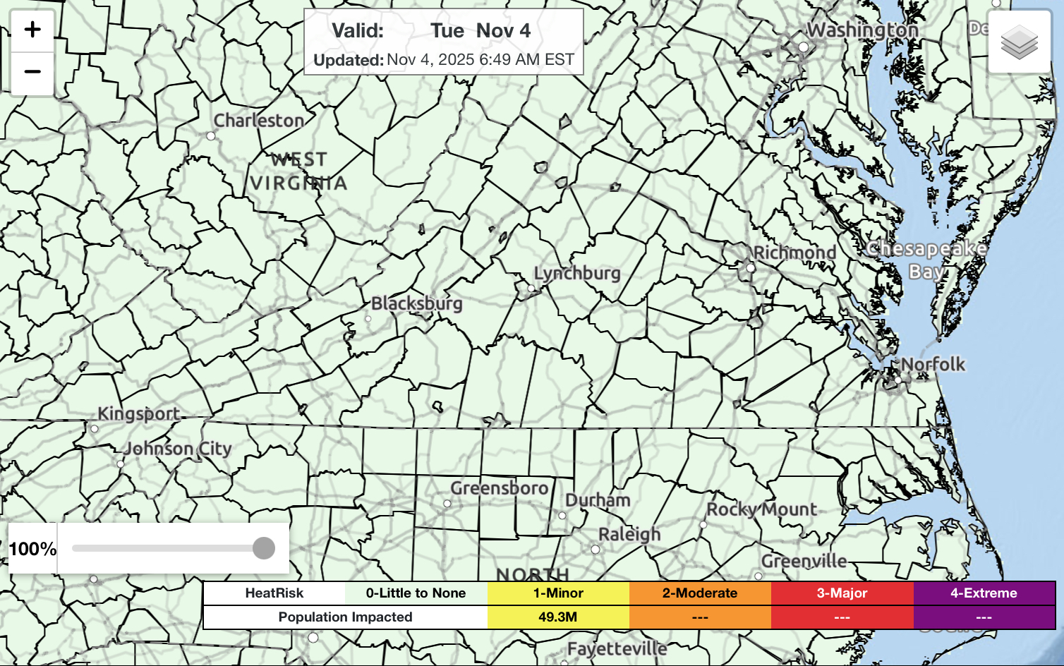 Today’s weather in the Wilderness, Tuesday, November 4 (Updated every morning by 8 AM).