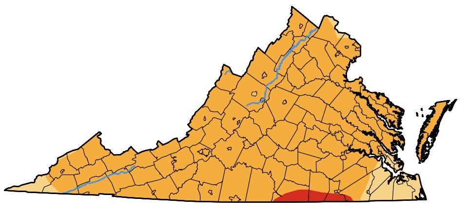 04/16/2026: I updated the Virginia Drought Monitor. The Wilderness has moved into severe drought. Every county in VA is to one degree or another too dry for agricultural success.